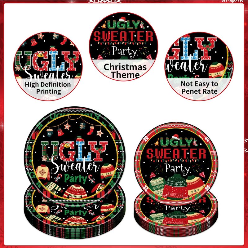 - Disposable: The ugly sweater Christmas party disposable dinner plate set is ready to be used and discarded, so you can say goodbye to the hassle of cleaning dishes. The ugly sweater Christmas party tableware set allows you to have a fun time at your party without having to worry about the subsequent cleanup, making Christmas full of carefree fun and great memories.
