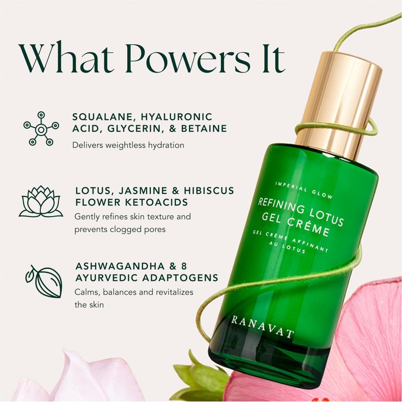 RANAVAT Refining Lotus Gel Cream - Hydrating Gel Moisturizer & Pore Minimizer – Improves Radiance & Texture with Hyaluronic Acid & Floral Ketoacids (1.7 oz)