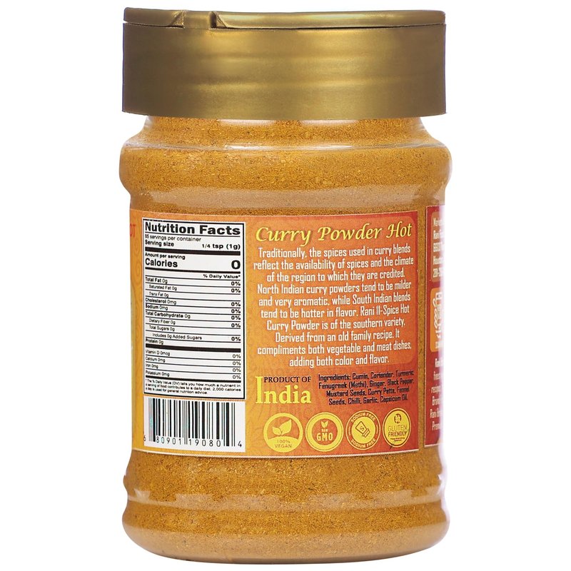 Rani Curry Powder Hot (11-Spice Authentic Indian Blend) 3oz (85g) PET Jar ~ All Natural | Salt-Free | Vegan | No Colors | Gluten Friendly | NON-GMO | Kosher | Indian Origin