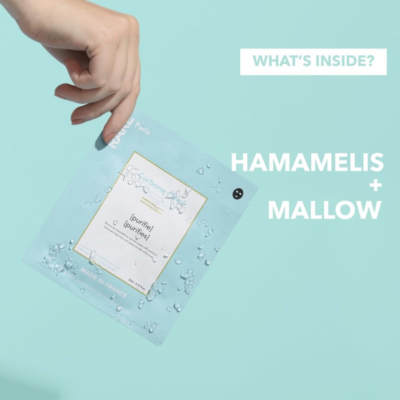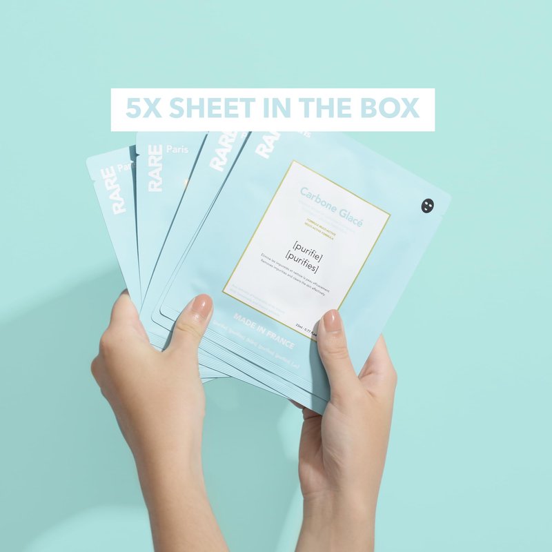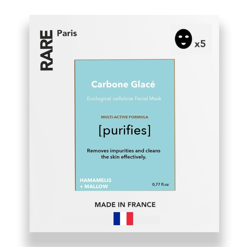 RARE Paris - Carbone Glacé Purifying Facial Mask - Purifying Carbon Black Sheet Mask with Hamamelis & Mallow - Purifying, Firming, Revitalizing - Made in France - 5/Box - 0,77 oz