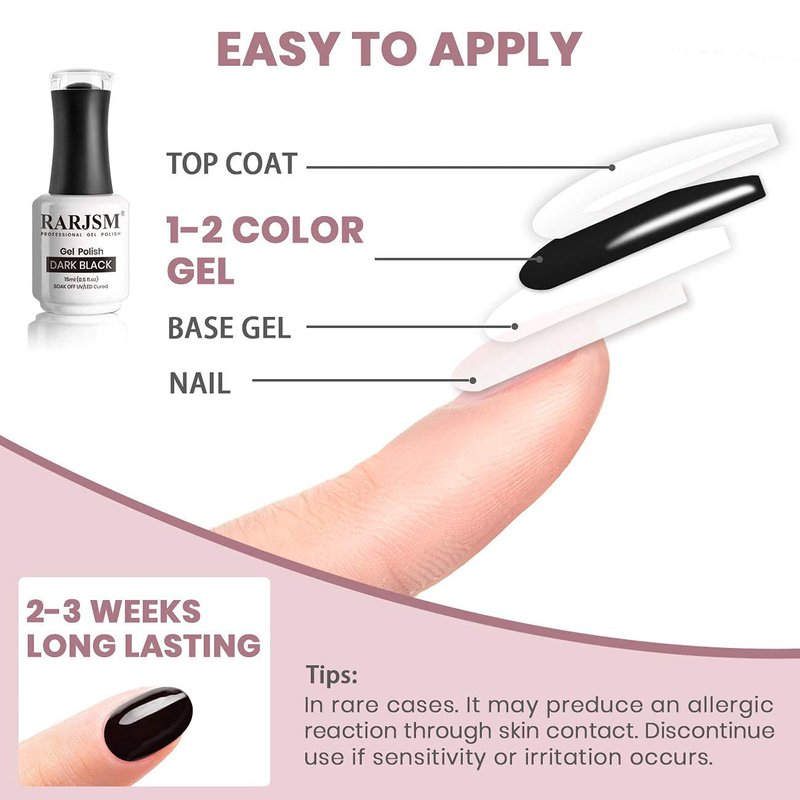 - Package Included : Simplicity and classical gift box packed with soak off black and white gel polish. It includes 2*15ml(0.5 fl oz)black gel nail polish and white gel nail polish.