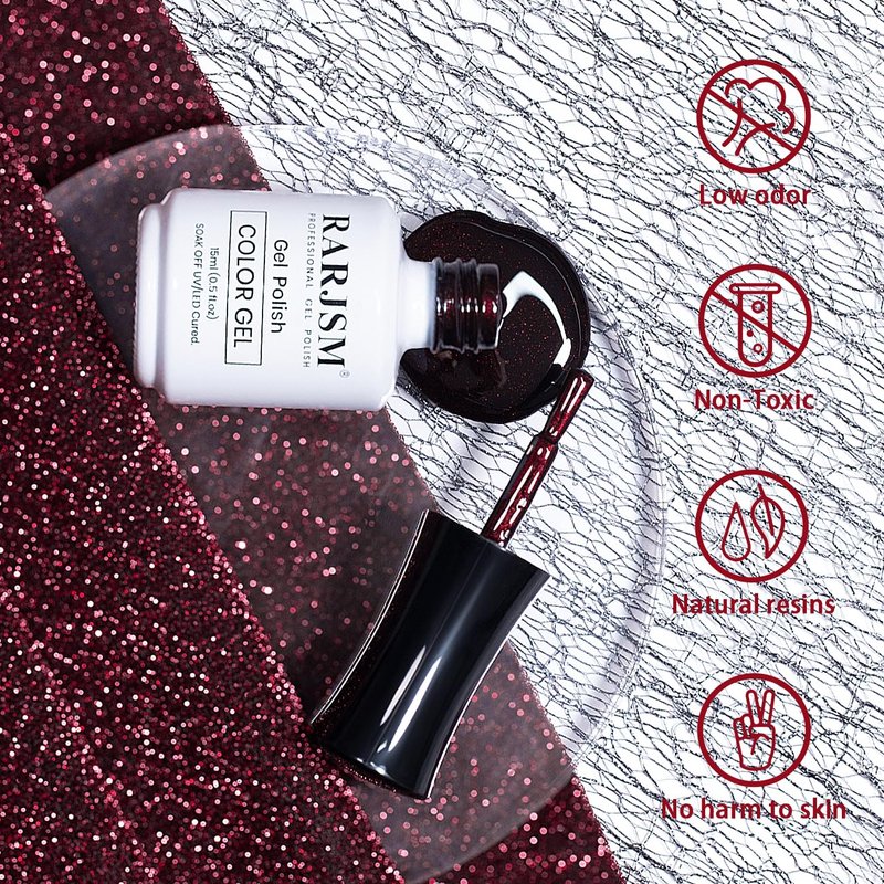 - VELVET GLITTER GEL POLISH:Package includes 1 bottles 15ml burgundy red color cat eye glitter gel nail polish and 1 piece magnetic stick which suit for all skintone. Diamond cat eye gel polish have a beautiful refection, look like little diamonds on your nails. This cat eye gel polish is easy to apply and soak off