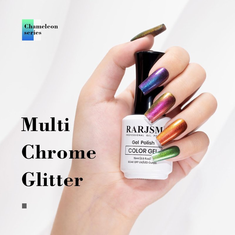 - EASY TO APPLY:These chameleon glitter gel nail polish are designed to last up to 21 days and are made of natural resin with smooth formula.They are low smell, rich color, middle consistency,self-evenly,no shrink and edge