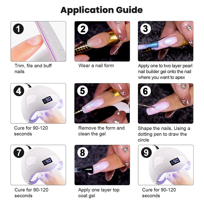 - EASY TO EXTEND:This pearl white gel builder is thicker than normal gel polish, because the gel texture is thick, quick self -levels but it does not spread and does not flow on the side rollers and cuticles. So it is very easy to brush on and extend the nails, we recommend a 1-2cm extension