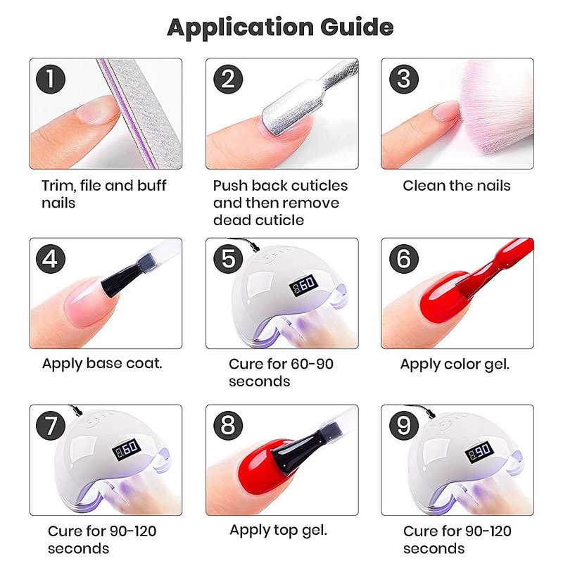 1. Before applying, please ensure your nails are completely dry, clean, which keeps the gel lasting longer.