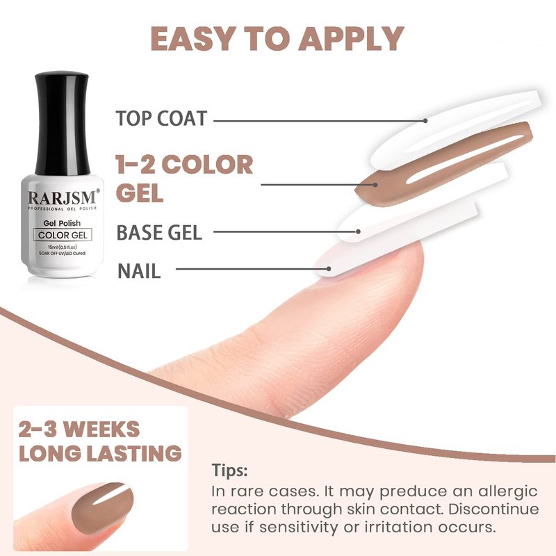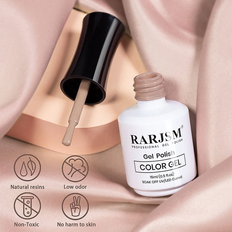 - HEALTHY INGREDIENTS: RARJSM nude gel polish is made of natural resin, non-toxic formula. They are low smell, rich color, middle consistency, self-evenly, no shrink and edge.