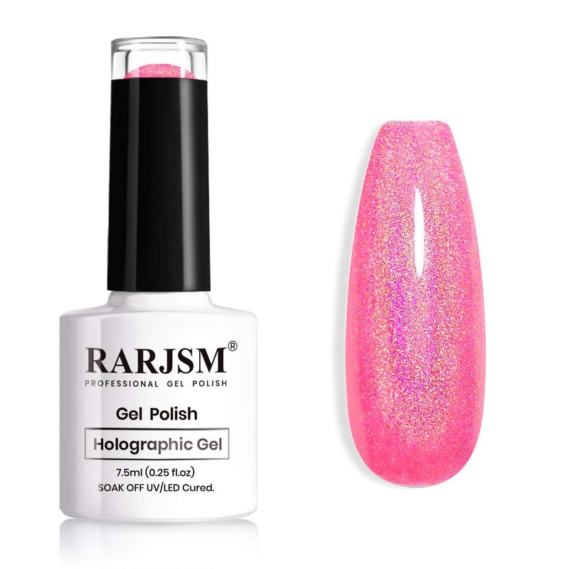 RARJSM Holographic Nail Polish Neon Hot Pink Gel 7.5ML Gorgeous Glossy Hologram Curing Required Art Manicure Salon DIY at Home