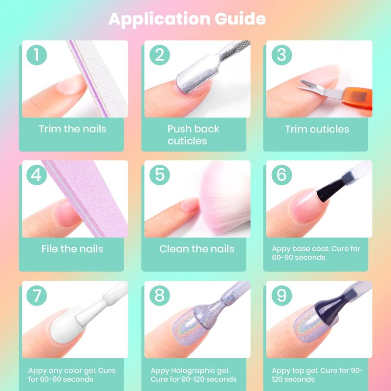 - HEALTHY INGREDIENTS & SAFE FOR SKIN: Our pastel rainbow color gel nail polish is made of healthy chemical materials,environment-friendly,natural resin,non-toxic formula.They are low smell,rich color,middle consistency,self-evenly,no shrink and edge.