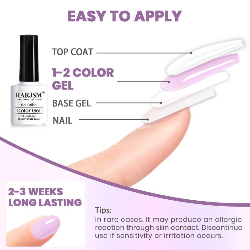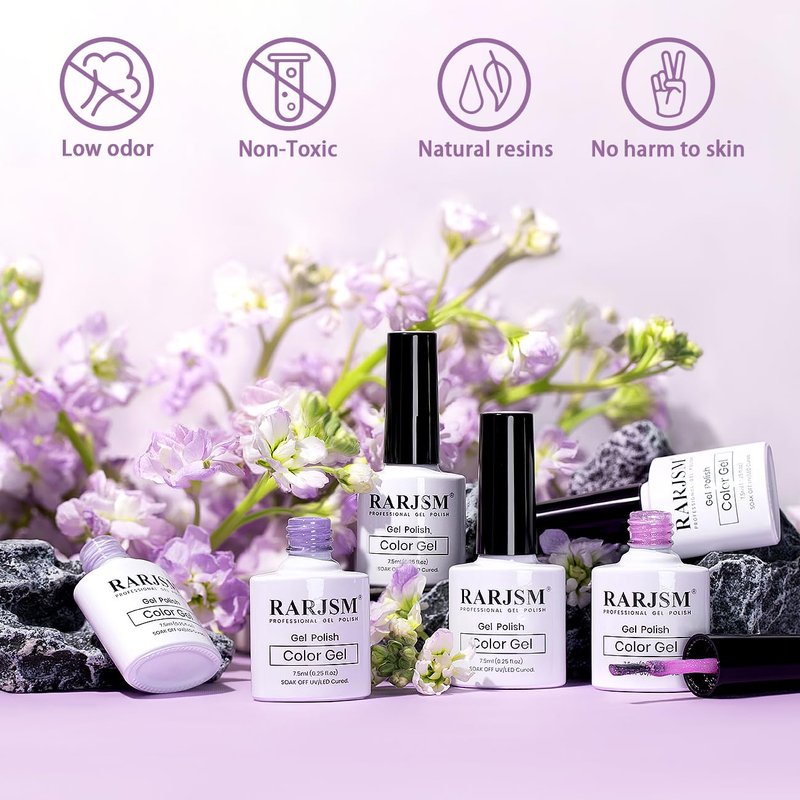 - 【6PCS SPARKLE NUDE SET】Package includes 6 bottles of 7.5ml RARJSM nude purple tone with glitter gel nail polish which suit for all skin tones. Nude nails are slightly translucent, a nude manicure is one of our favorite ways to rock the neutral hue. If you want a sheer nude shade effect we recommend applying 1-2 layers.If you like a nude opaque effect you can apply 3-4 layers.