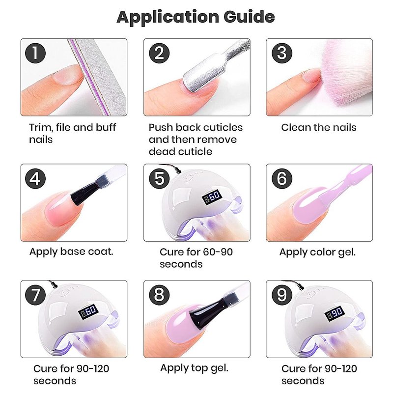 - 【SALON QUALITY HOME USED】Glitter jelly nude gel nail polish is a good choice for use in a professional nail salon or nail starter at home. You can design your own manicure at home to show your style. Remember the gel polish needs to be cured under LED or UV nail lamps. The average for Nail lamps is 60-120 secs.