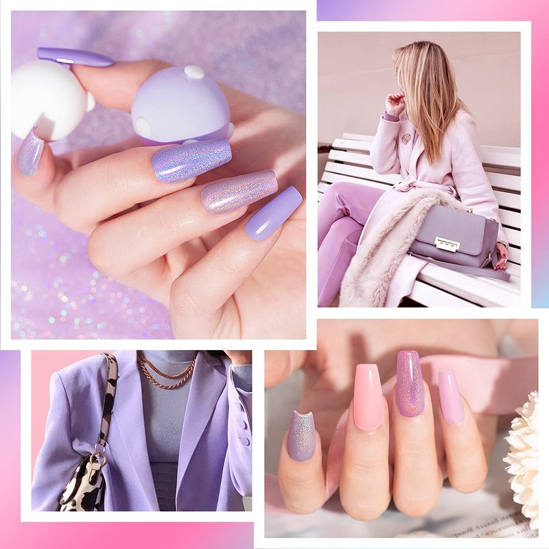 - MAGIC HOLOGRAPHIC EFFECT: 6 different shades of popular and trendy pastel pink purple colors suitable for all seasons and daily routine life!Sivler holographic nail gel makes a great combine of chrome mirror effect and laser chameleon effect while on other 5 color gel.