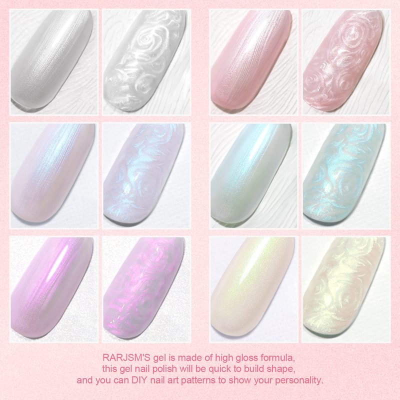 RARJSM Pearl Gel Nail Polish Set 6 Colors Pearlescent Shell Glitter White Gold Pink Green Purple Shimmer Mermaid Nail Polish Soak Off LED UV Curing Requires Swirl Thread Effect DIY Manicure Use