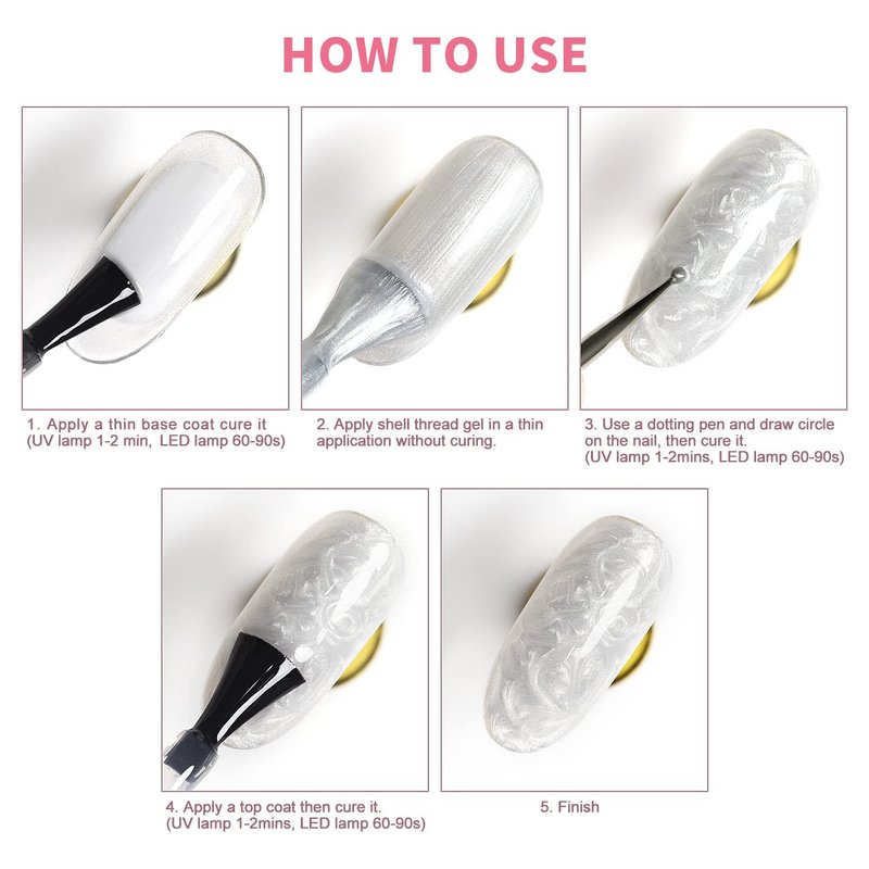 - UNIQUE DESIGN GEL POLISH: Package include 6 bottles shell glitter gel nail polish.This is 2-in-1 shimmer gel polish,7.5ML/ 0.26fl oz, not only can be pearl gel polish but also can be swirl thread Shell nail gel.