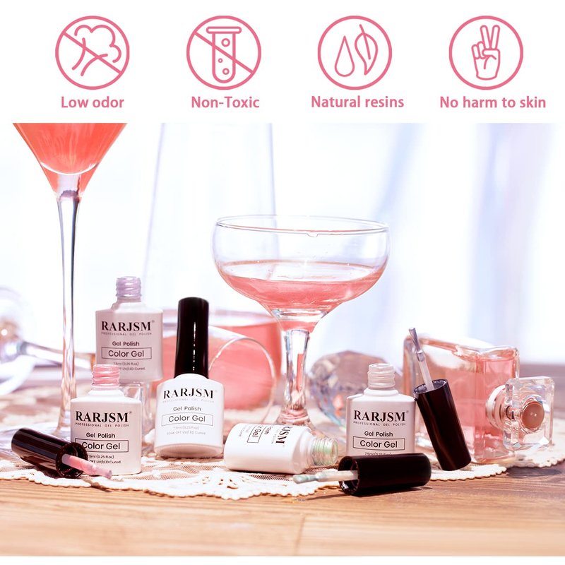 - ENVIRONMENTAL AND HEALTHY: RARJSM dazzling pigment nail gel polish is made of natural resin, non-toxic formula.No harsh ingredients or adhesives with low smell, rich color, middle consistency, self-evenly, no shrink and edge.
