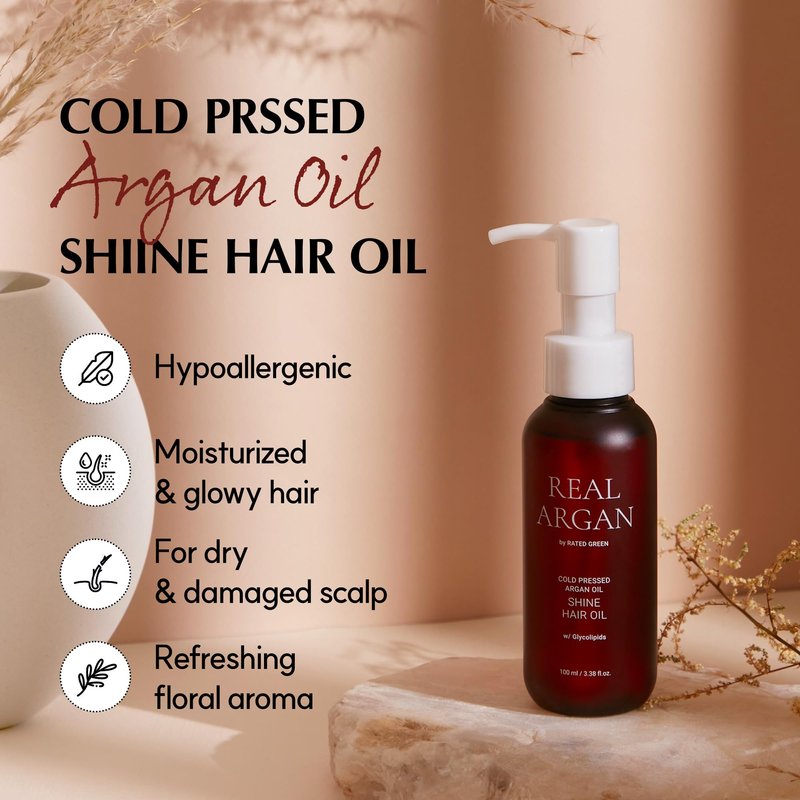 - ARGAN OIL = SHINE & RADIANCE. Experience a dazzling shine and radiance that will turn heads wherever you go with our hair oiling enriched with Argan Oil. Showcase brilliantly radiant hair with our premium Argan Oil for hair.