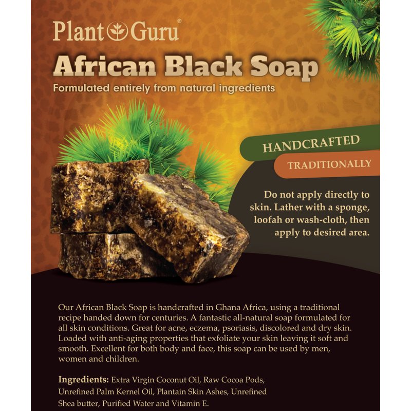 - African Black Soap: Handcrafted in Ghana using traditional recipe for all skin types.