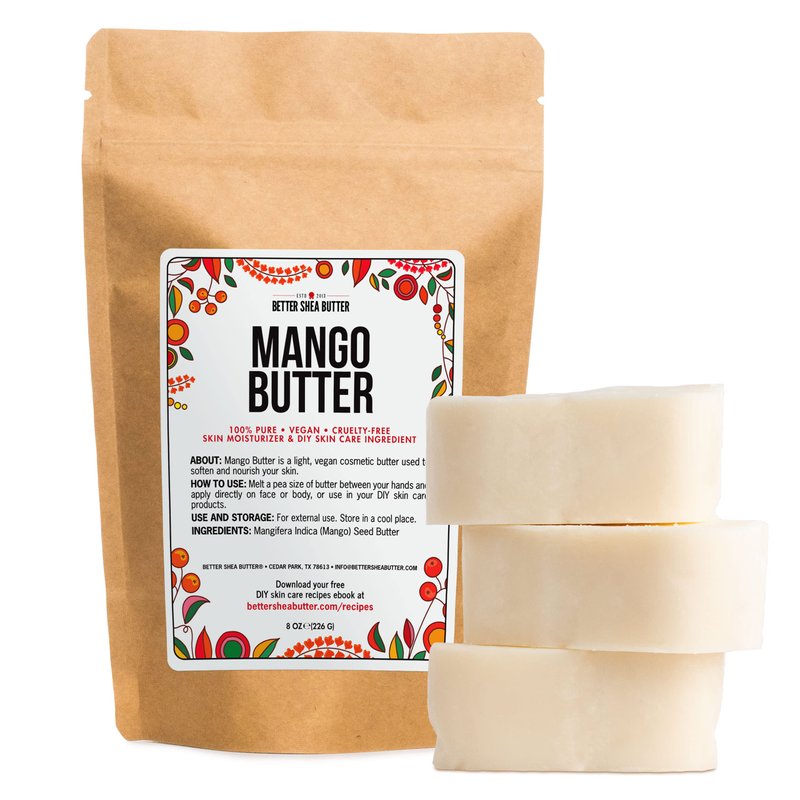 - FASTER TO ABSORB THAN SHEA BUTTER - Raw natural mango butter is a lighter body butter that is smooth and fast to absorb into skin. Mango butter can replace shea butter in skin care recipes if desired.