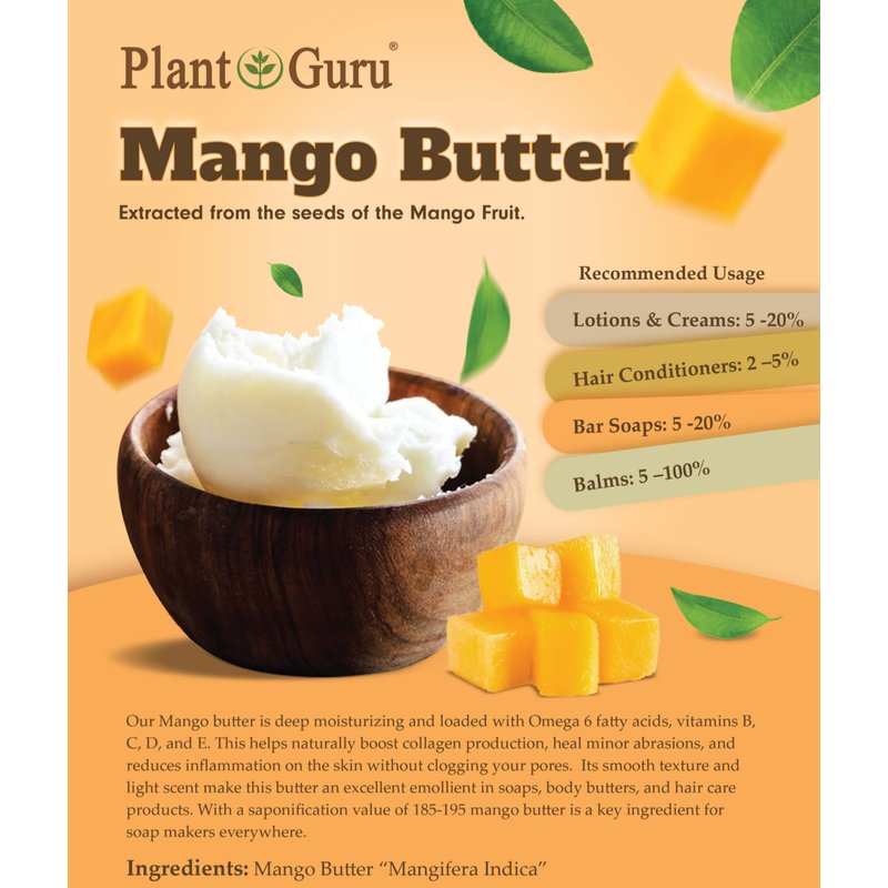 - ✅ SKIN CARE - Mango Butter is commonly used in the cosmetic industry because of its high oxidative stability. The unique properties of Mango Butter along with high level of non-saponifiables make it a very effective emollient. Mango Butter is a key ingredient in many soaps, creams and lotion making recipes.