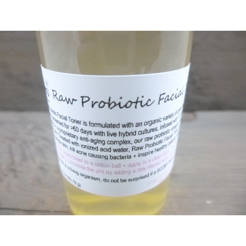 Raw Probiotic Facial Toner is formulated with an organic variety of green tea + cane sugar. Fermented for >60 days with live hybrid cultures, bacillus ferment + a proprietary anti-aging complex, our raw probiotic vinegar makes the perfect facial toner. Created with ionized acid water, Raw Probiotic Facial Toner is pH balanced + helps cleanse skin, kill acne causing bacteria + inspire healthy cellular regeneration. This facial toner is made from kombucha vinegar + smells . . . well, like vinegar. If you'd like I can add a few drops of a beneficial essential oil, at no additional cost. Listing is for 1, 2.5 oz glass bottle.