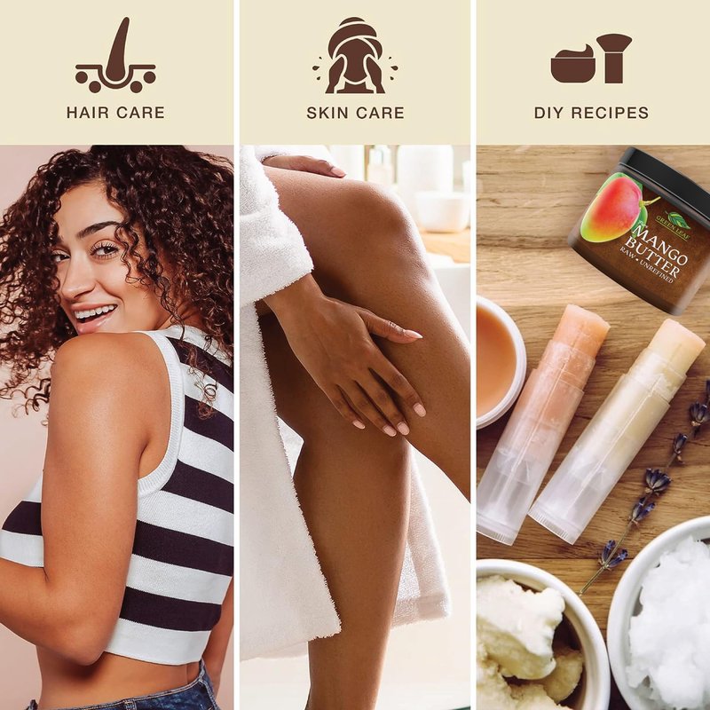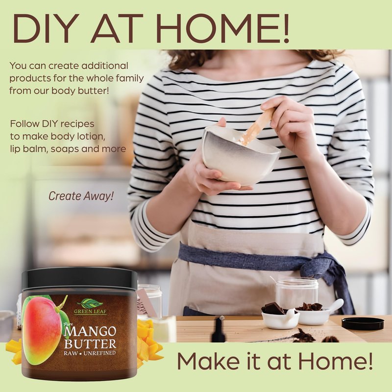 Gentle enough for a baby's skin, our pure raw Mango Butter moisturizes, softens and nourishes for healthy skin, hair and scalp. Use Green Leaf's unrefined mango butter to: (1) Moisturize, soothe and soften skin, (2) Repair damaged and aging skin, (3) Relieve sunburn and insect bites, (4) Prevent and repair stretch marks, (5) Protect and rejuvenate skin cells, (6) Create your own DIY skin care recipes. Unrefined mango butter is one of the best body butters for women because it is packed with antioxidants, fatty acids, minerals and vitamins making the skin and hair hydrated. Additional to mango butter, Green Leaf has shea butter and cocoa butter. The pure butters have been known as bump butter because of the amount of pregnant and postpartum women that use mango shea cocoa butter as a moisturizer. Mango butter in piece is known to be a great DIY ingredient for chapsticks, lotion, hand cream, exfoliator, face mask, soap making, foot cream, etc.