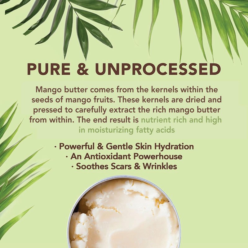 - Goodbye Dry Skin - Our raw mango butter effectively moisturizes and supports healthy skin.