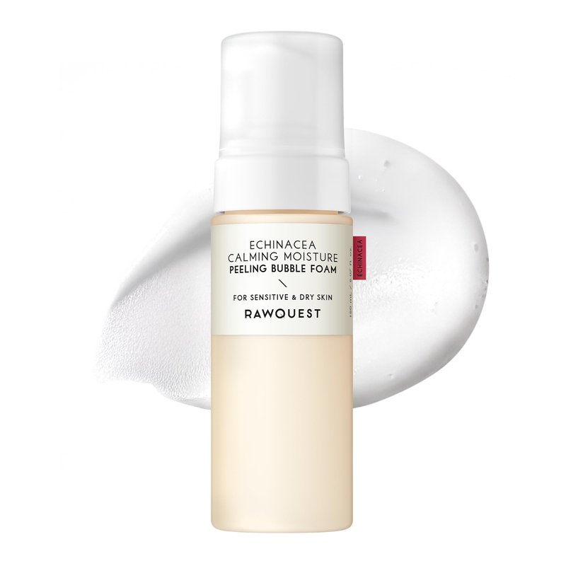RAWQUEST Echinacea Calming Moisture Peeling Bubble Foam (5.07 Fl. Oz,150ml) | Foaming Facial Cleanser Non-Stripping, Non-Sticky, Moisturizing, Exfoliating & Soothing Korean Skincare for Sensitive Skin