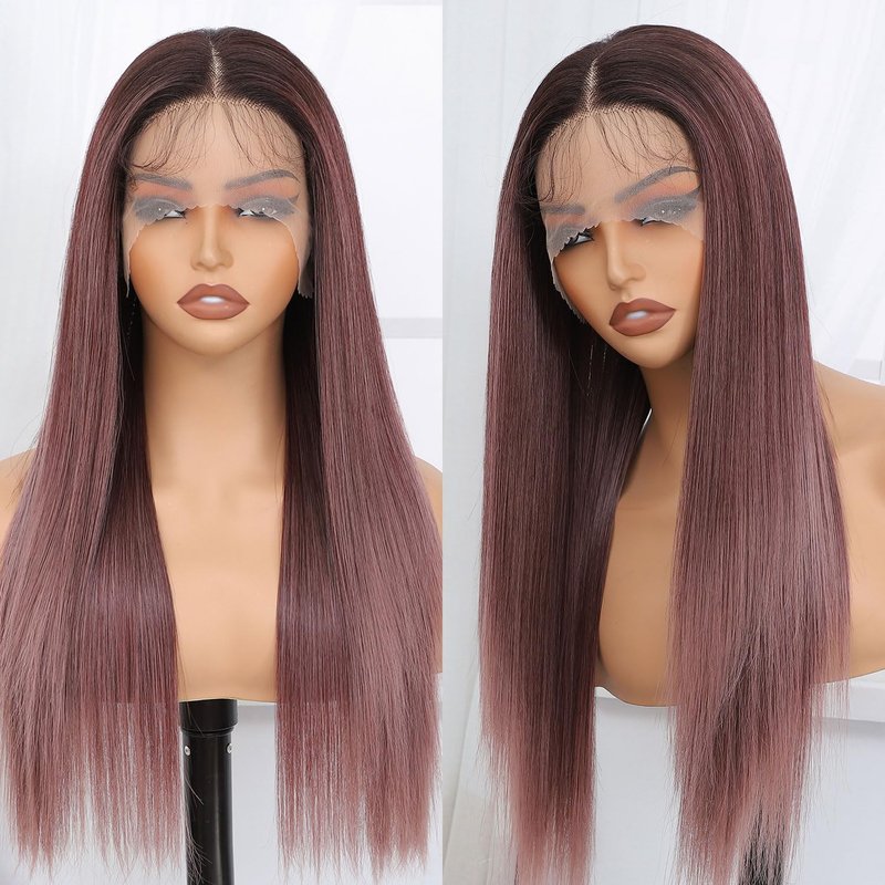 - Ombre Brown Mixed Purple Lace Front Wig Synthetic Pre Pulcked Wear And Go Glueless Wig Highlight Ombre Synthetic Lace Front Wigs for Women Ombre Brown Mixed Purple Straight Synthetic Lace Front Wig 26 inch