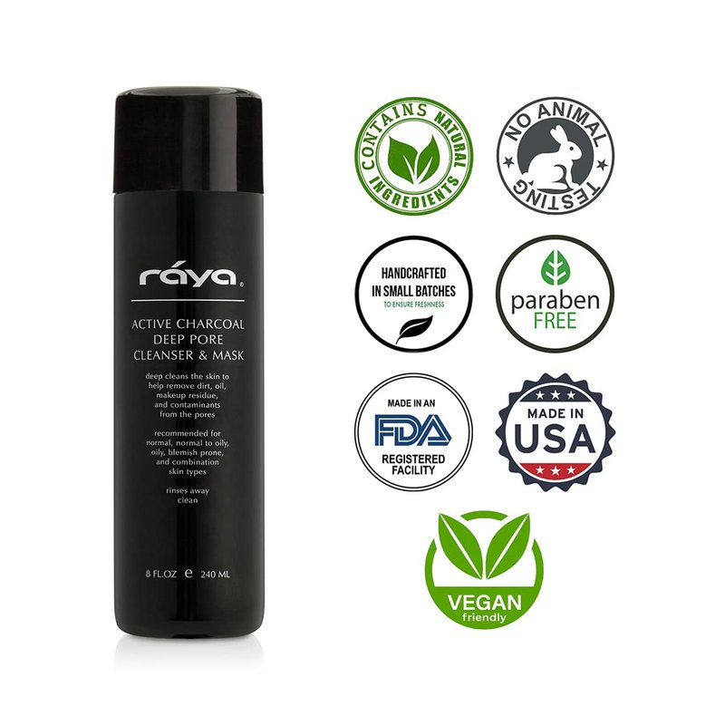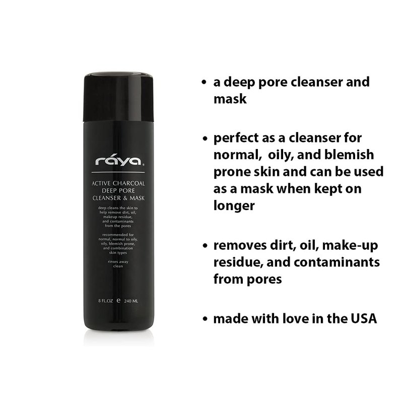 Active Charcoal Deep Pore Cleanser & Mask deeply cleanses skin to remove dirt, oil, make-up residue, and contaminants from pores. This effective blend of Activated Charcoal and a mild, sulfate-free, cleanser helps absorb toxins and balance the pH. Amino Acids, enzymes, herbal extracts, and pure essential oils provide excellent skin conditioning and moisturizing properties. It also contains natural clay with additional oil absorbing and detoxifying properties. It is recommended as a cleanser for normal, normal to oily, oily, and blemish prone skin types. The Active Charcoal Deep Pore Cleanser & Mask is recommended as a deep pore detox mask treatment for combination skin types. It is not recommended for very dry skin. Active Charcoal Deep Pore Cleanser & Mask (121) | RAYA