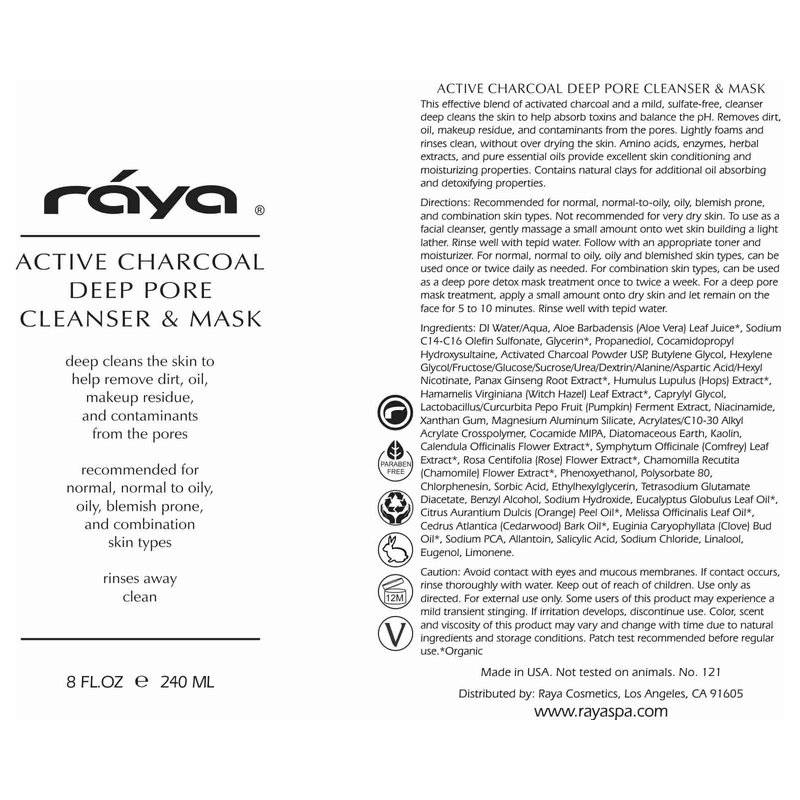 Raya Active Charcoal Deep Pore Facial Cleanser and Mask (121) | Deep Pore Cleansing Fluid for Combination, Oily, and Blemished Skin | Can Be Used as a Deep Pore Detox Mask for Combination Skin