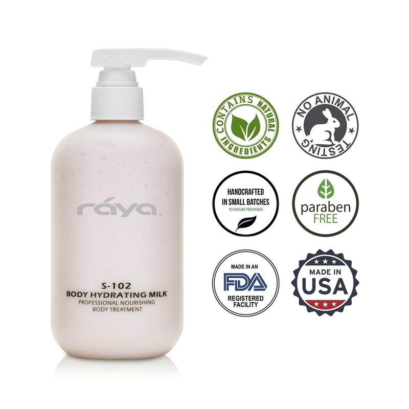 Raya Body Hydrating Milk 16 oz (S-102) | Hydrating, Moisturizing, and Restorative Body Lotion | Rich in Natural Oils, Butters, and Vitamins | Calms and Softens