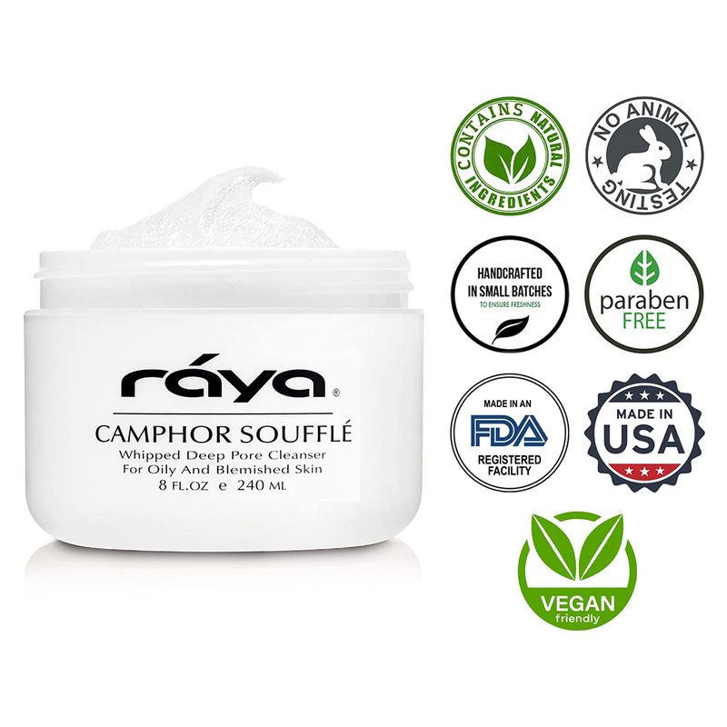 Raya Camphor Soufflé Facial Cleanser 8 oz (101) | pH Balanced Face Wash for Oily, Blemished, and Break-Out Skin | Helps Reduce White-Heads and Black-Heads and Clear Clogged Pores