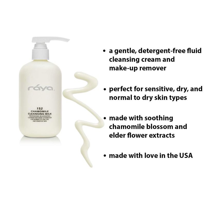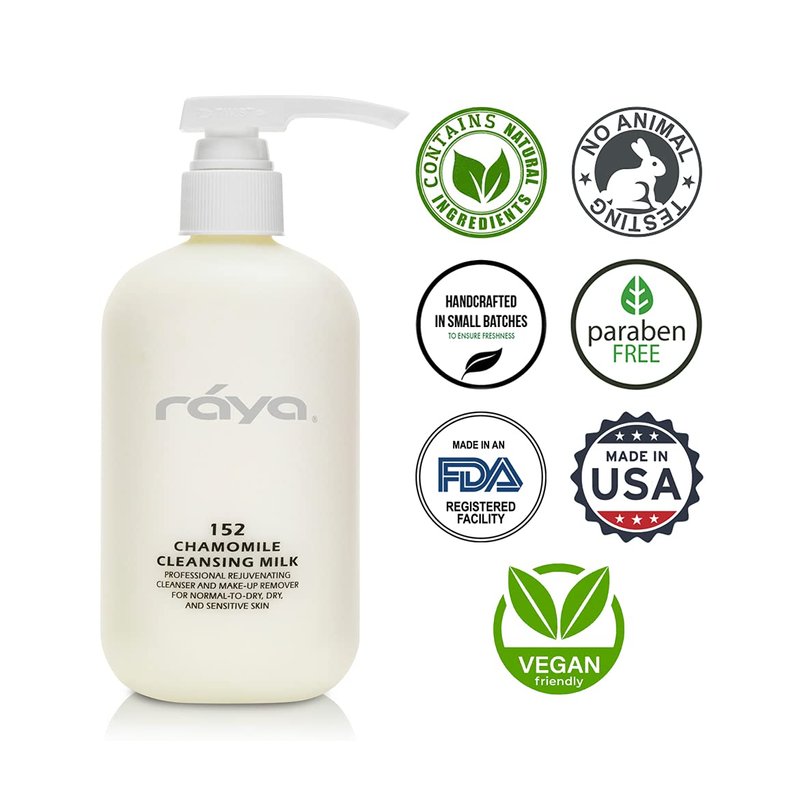 Raya Chamomile Facial Cleansing Milk 16 oz (152) | Gentle, Soap-Free Fluid Cleanser and Make-Up Removing Lotion for Dry and Sensitive Skin | Helps Calm Irritations and Refine Pores