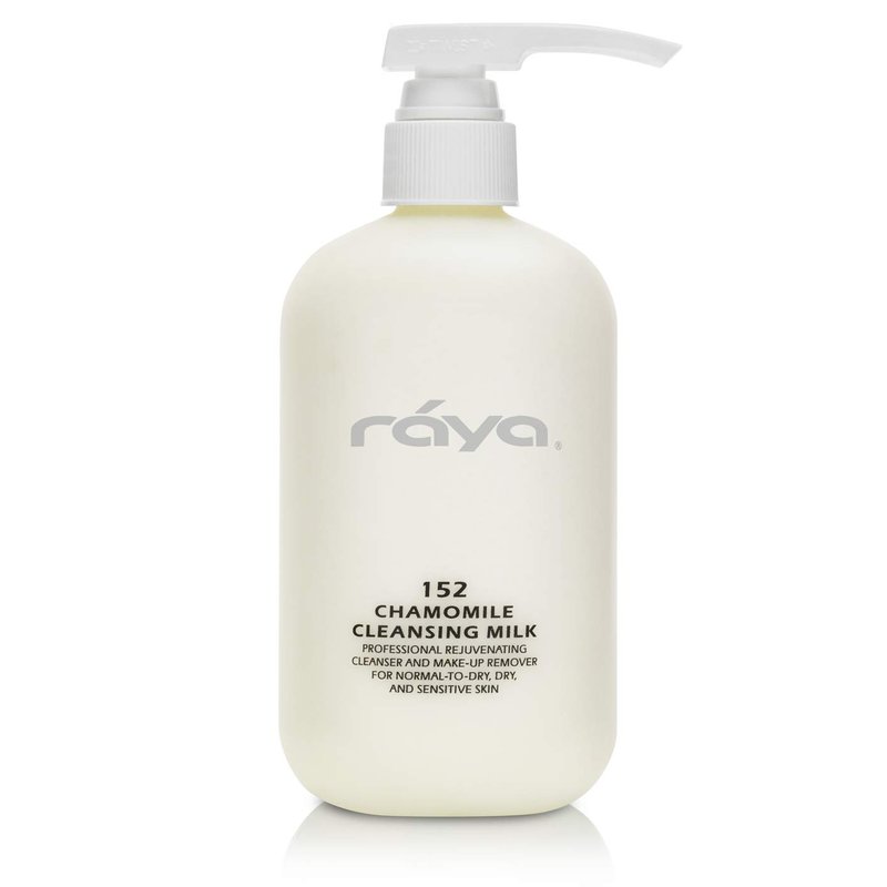 Chamomile Cleansing Milk is a gentle, detergent-free, fluid cleansing cream. It is recommended as a cleanser and make-up remover for sensitive, dry, and normal to dry skin types. It helps to remove make-up and surface impurities, while restoring the natural pH balance of the skin. Extracts of Cucumber, Elder Flower, Chamomile Blossom, and Orange Peel contained in this product are known for their soothing properties. Vitamin-E, Vitamin-A, Sodium PCA, Glycosaminoglycans, Chamomile Oil, Ascorbyl Palmitate, Dimethicone, Glycerin, and Safflower Oil protect and maintain the skin from moisture loss. Glycosaminoglycans help calm inflammation and refine pores. Chamomile Cleansing Milk gently cleanses without stripping the skin of its natural oils and helps improve skin‘s suppleness and elasticity. Chamomile Cleansing Milk (152) | RAYA