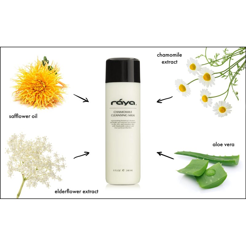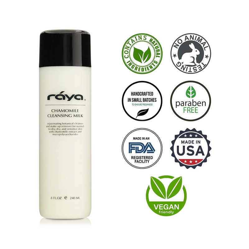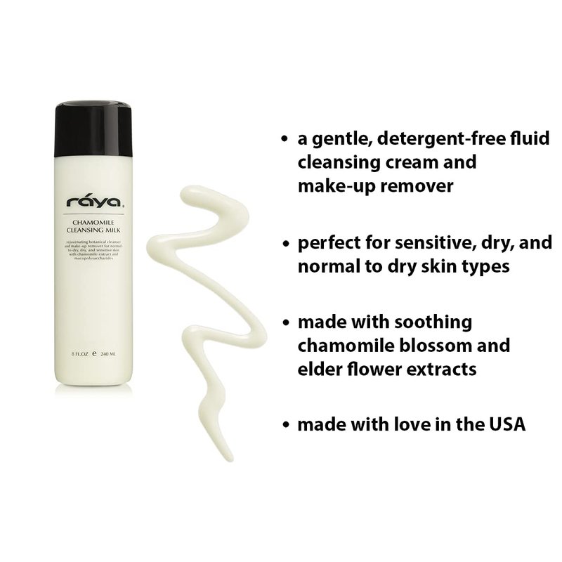 Raya Chamomile Facial Cleansing Milk 8 oz (152) | Gentle, Soap-Free Fluid Cleanser and Make-Up Removing Lotion for Dry and Sensitive Skin | Helps Calm Irritations and Refine Pores