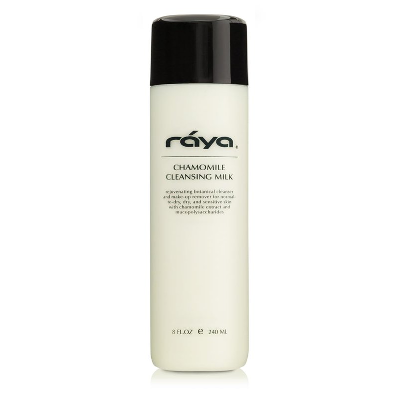 Chamomile Cleansing Milk is a gentle, detergent-free, fluid cleansing cream. It is recommended as a cleanser and make-up remover for sensitive, dry, and normal to dry skin types. It helps to remove make-up and surface impurities, while restoring the natural pH balance of the skin. Extracts of Cucumber, Elder Flower, Chamomile Blossom, and Orange Peel contained in this product are known for their soothing properties. Vitamin-E, Vitamin-A, Sodium PCA, Glycosaminoglycans, Chamomile Oil, Ascorbyl Palmitate, Dimethicone, Glycerin, and Safflower Oil protect and maintain the skin from moisture loss. Glycosaminoglycans help calm inflammation and refine pores. Chamomile Cleansing Milk gently cleanses without stripping the skin of its natural oils and helps improve skin‘s suppleness and elasticity. Chamomile Cleansing Milk (152) | RAYA