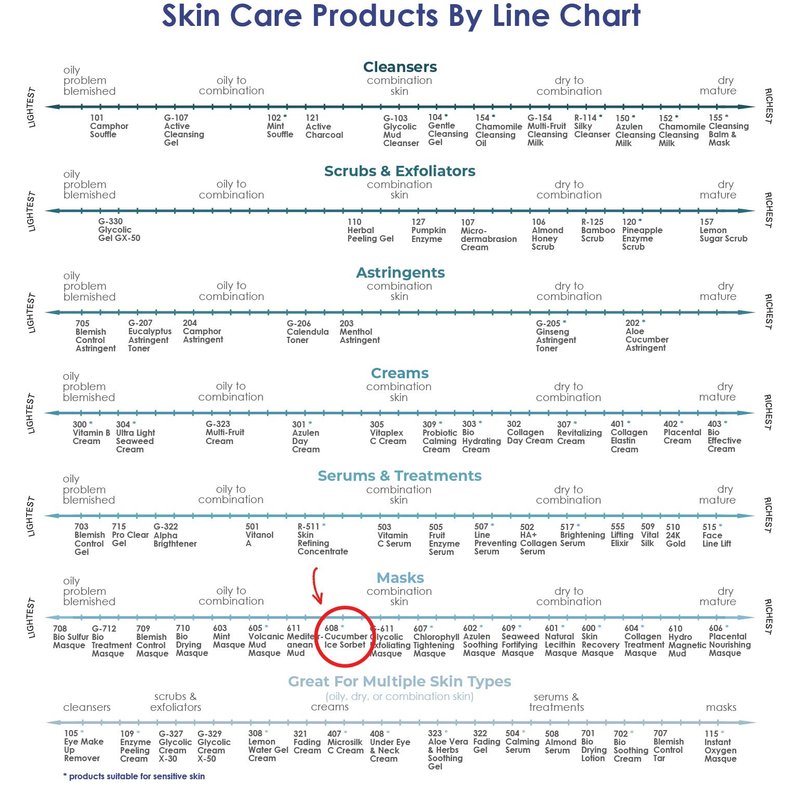 Cucumber Ice Sorbet is a gentle, facial, cooling gel. It is recommended as a calming and soothing regimen for all skin types, including sensitive skin. A natural synergy of Cucumber, Chamomile, and Aloe Vera Extracts provides an anti-irritant effect and helps reduce redness and inflammation associated with in-salon treatments or environmental pollutants. Use of this cooling gel masque at home helps prevent blemishes and promotes hydration. Cucumber Ice Sorbet Masque (608) | RAYA