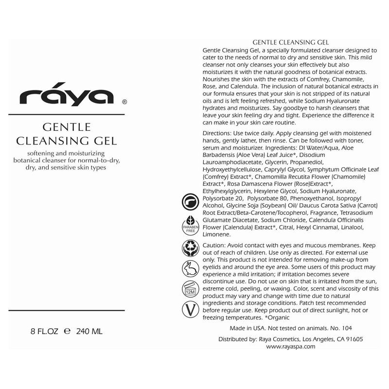 Raya Gentle Facial Cleansing Gel 8 oz (104) | Softening and Moisturizing Botanical Cleanser for Dry and Sensitive Skin| Helps Hydrate Smooth Complexion