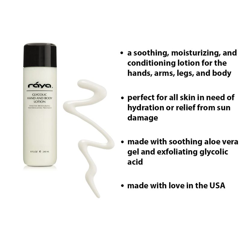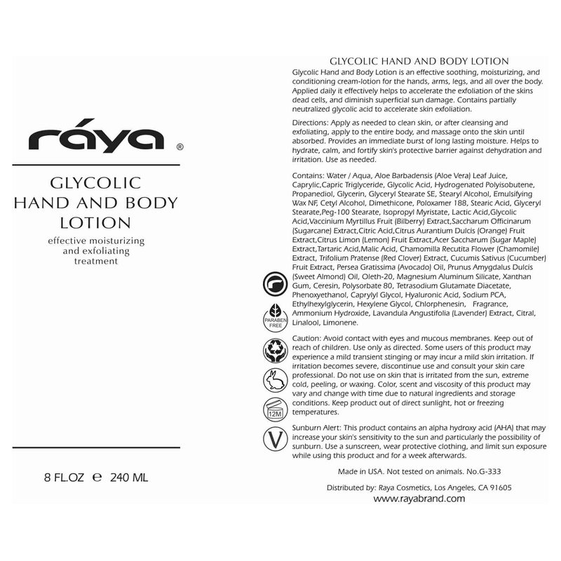 Raya Glycolic Hand and Body Lotion with AHA (G-333) | Soothing, Moisturizing, Exfoliating, and Conditioning Lotion for the Hands, Arms, Legs, and Body | Made with Alpha Hydroxy Acids