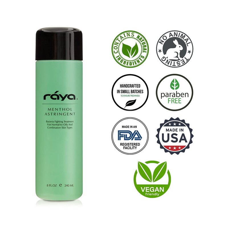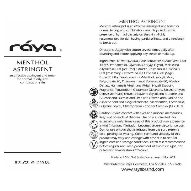 RAYA Menthol Astringent 6 oz (203) | Effective Facial Toner for Combination and Partially Oily Skin Prone to Break-Outs | Helps Refine, Tighten, and Protect pH Balance | Cools, Refreshes and Soothes