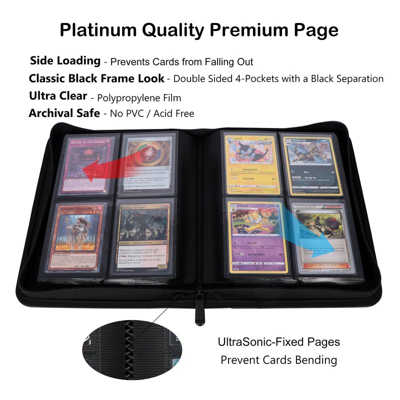 - Premium Pages: Double sided low-friction black backing, creating a separation between the front and back pockets, as well as providing cards a classic framed look.