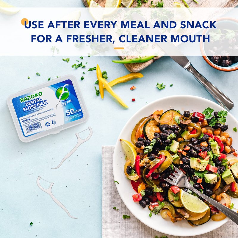 RAZOKO Dental Floss Picks High Toughness Professional Toothpicks Sticks 6-Pack(300pcs) with Portable Case and Dental Picks Perfect for Family,Hotel,Travel