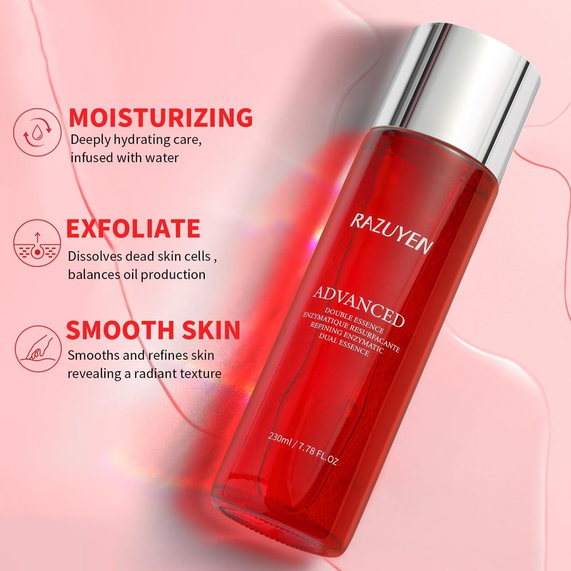 Our Double Essence Toner has been meticulously developed to tackle the most common skin concerns of oily skin. Say goodbye to the long-lasting battle against excess shine and dull complexion with our facial toner. Unlock the secret to radiant, shine-free skin. It's time to embrace a skincare routine that truly works for you. Say hello to the best version of your skin, and say goodbye to facial dullness and enlarged pores.