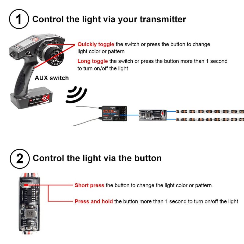 - This Light strips and controller kit is suitable for RC car, truck, RC airplane, RC boat, drone, fixed-wing and other RC vehicles.