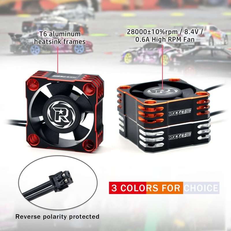 - 【Cool Model Design】Heatsink is black body with cool orange patterns and lines, simple and cool. Esc cooling fan compatible with all brackets with 24mm mounting holes.