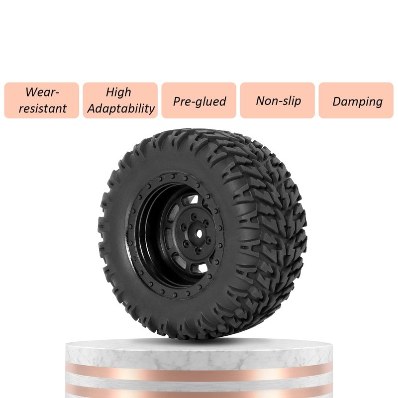 "Please make sure our RC tires and wheels are the correct sizes you are looking for, to avoid the returns products and save your time due to the inconsistent size." Key Features: 1. RC Wheels and Tires Size: The size of our 1/10 RC Off-Road Buggy Tires, Inner Diameter: 2.12" (54mm) | Outer Diameter: 4.4" (112 mm) | Width: 2" (52mm) | Hex Size: 12mm. 2.High-Quality Material: This is an Assembled 1/10 Scale RC Off-Road Buggy tires with foam inserts, ready to use. The material of these tires is taking high-quality soft rubber, and the wheels are made of high-quality plastic. That has increased the tires and wheels' durability, wear-resistant, practical. 3. Product use precautions:This 1/10 Scale RC Wheels and Tires with 12mm hex, and it also fit small monster truck car, it designed for almost all 1/10 Scale RC Off-Road Buggy Car with 12mm hex, like for HIMOTO TREKKER / Hobao /HPI /ABSIMA/Corally/ Kyosho Ultima RC car, etc. Item name:1/10 Pre-glued RC Off-Road Buggy wheels and tires Color: Black Wheel rim diameter: 54 mm Tire outside diameter: 112 mm The width of the tire: 50 mm Hexagon 12mm adapter Suitable for: 1 / 10 Off-Road Buggy Car, Small Monster Truck Quantity: 4 Pcs Item weight: 100 GR /piece Package information: Package Weight: 370GR OPP bag package Package Included: 4 RC tires & wheels