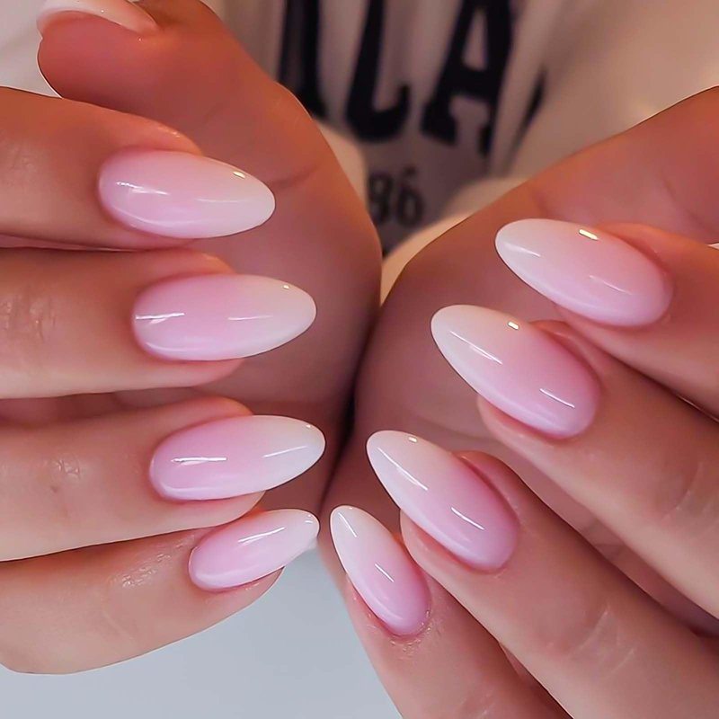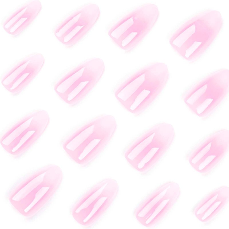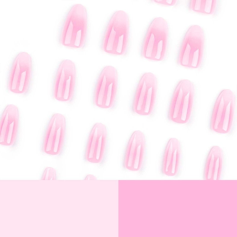 Rchovsam Press on Medium Nails Almonds Fake Nails Pink Gradient Stick on Nails Glossy Acrylic Glue on Nails for Women Girls 24pcs