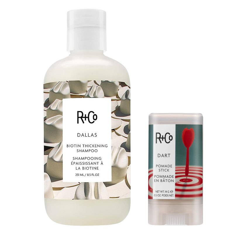 - Includes: R+Co Dart Pomade Stick (0.5 Oz) + R+Co Dallas Biotin Thickening Shampoo (8.5 Oz)