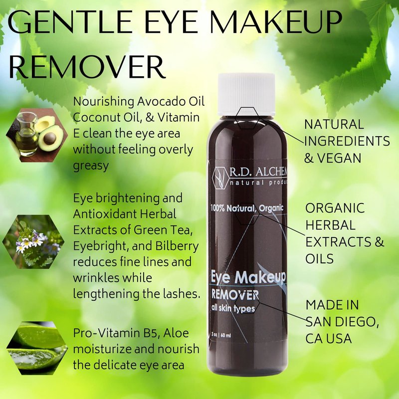 RD Alchemy - 100% Natural & Organic Gentle Eye Makeup Remover for All Skin Types - Wipes Away the Toughest Eye Makeup while Nourishing the Eye Area and Lengthening Lashes