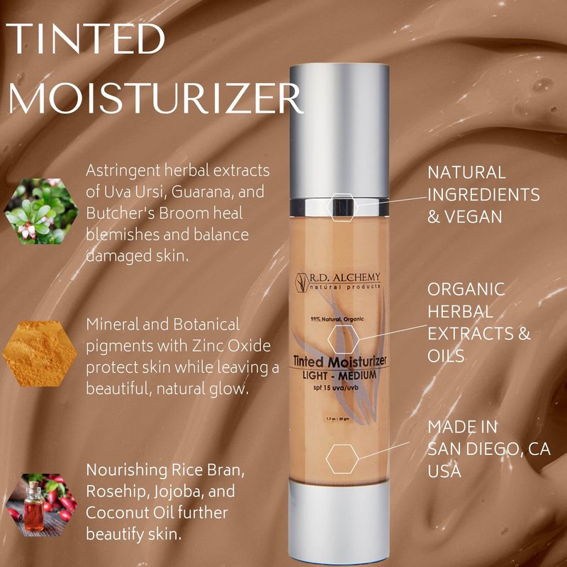 RD Alchemy - 99% Natural & Organic Tinted Moisturizer MEDIUM-DEEP Shade with SPF. Best BB and CC cream for Normal to Dry Skin. Dark Circles & Blemishes, Reduced Pore Size, & Less Acne Breakouts.