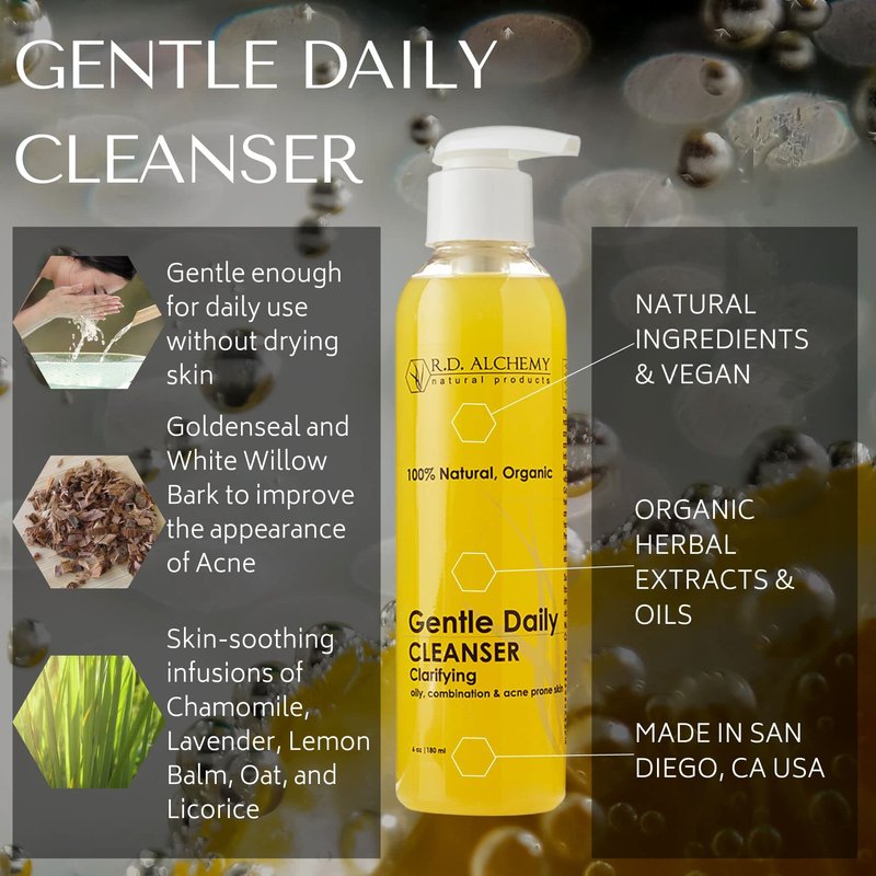 RD Alchemy - Natural & Organic Gentle Daily Cleanser. Best Face Wash for Oily Skin and Combination Skin that is Acne prone. Deep cleansing with Tea Tree and Goldenseal.